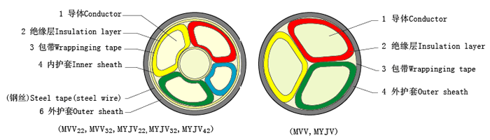 Scope of application MVV 煤矿用聚氯乙烯绝缘聚氯乙烯护套电力电缆