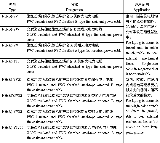 耐火电缆NH-VV按GB12706《额定电压35kV及以下铜芯、铝芯塑料绝缘电力电缆》和GB12666《电线电缆燃烧实验方法》标准生产.适用于工频额定电压0.6/1kV及以下配电线路或工业装置中有耐火要求的固定敷设场所使用。