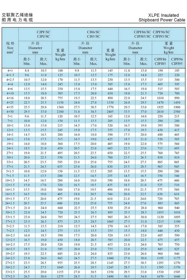 船用电力电缆CJ85/SC CJPJ95/SC