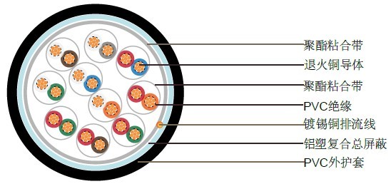 | 总屏蔽 | 铝塑复合屏蔽,金属面向内,紧挨0.5mm2的排流线 |