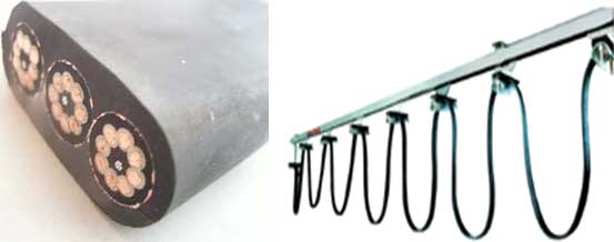 | YFBPG | 天然丁苯绝缘和氯丁护套钢丝加强型铜丝屏蔽扁电缆 | 70°C | 室外及有油污场所 |