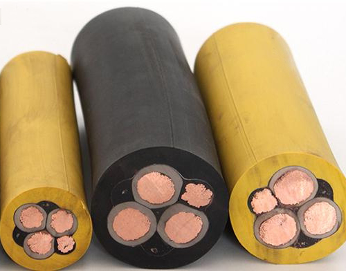 MYP型电缆有3个带绝缘屏蔽的主线芯和一个包覆半导电橡皮层的地线组成,围绕半导电橡皮层垫芯绞合成缆。外面挤包黑色氯化聚乙烯橡皮护套或黑色氯丁橡皮护套。