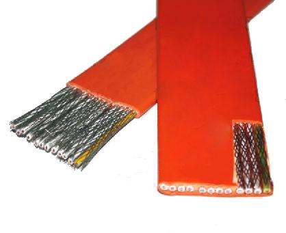 硅橡胶扁电缆绝缘和护套等采用硅橡胶材料。来提高电缆柔软特性及防腐耐寒等性能。可按顾客需要,在线芯两侧增加钢丝绳或其他承力元件。