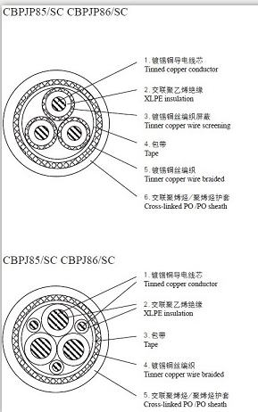 | CBP | 船用变频器电缆 | T(省略) | 铜 | J(YJ) | 交联聚乙烯绝缘 |