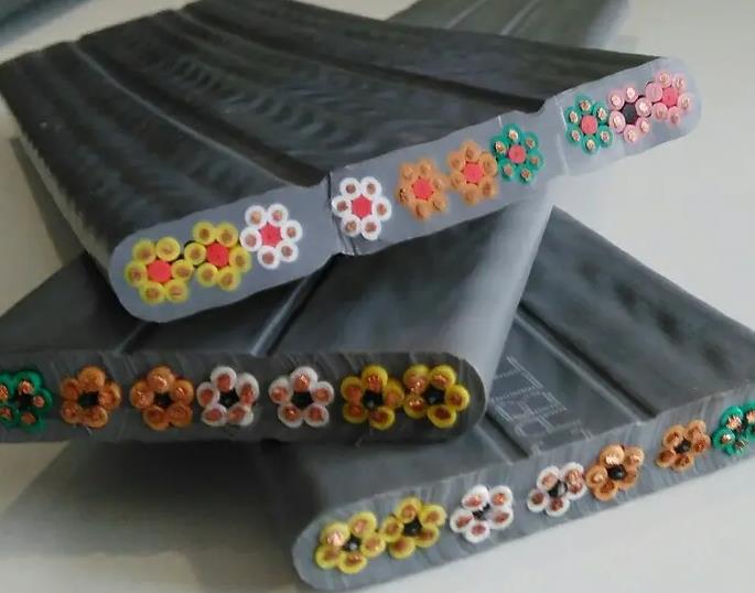 根据移动电气设备一般运动在水平和上下位置的特点,扁形结构不容易扭转,有利于改善和提高电缆使用寿命。