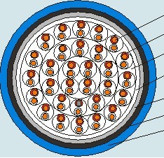 5、煤矿用聚乙烯绝缘铝-聚乙烯粘结护层钢丝铠装聚氯乙烯护套通信电缆, 规格:50×2,导体结构:1/0.8mm