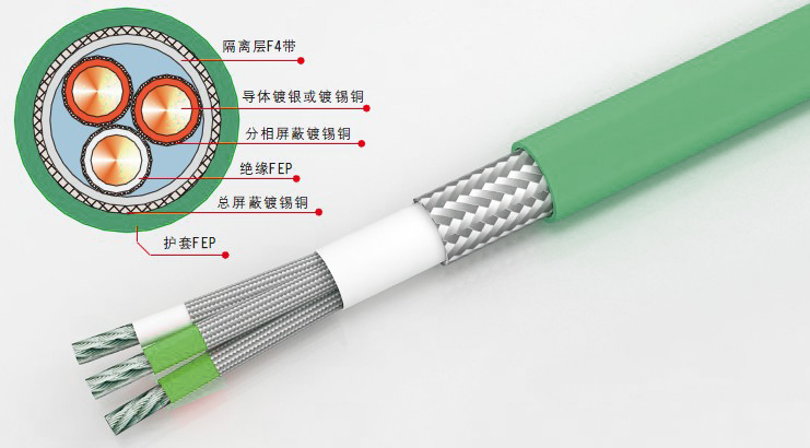 加强屏蔽,总屏密度95%,防止信号干扰;产品每相间的均衡,0.02欧姆/100米;耐温-65℃~200℃,耐高温、耐油、耐老化;加强筋提高抗拉伸能力,电缆抗拉伸能力强;