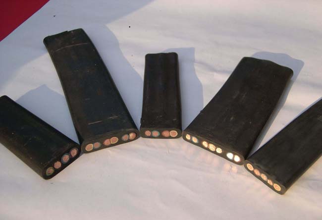 丁睛聚氯乙烯绝缘及护套扁平软电缆用PVC和氯丁橡胶设计的扁平电缆广泛用于起重机、开放环境中的输送传输设备以及行车等设备中。 执行标准:是参照国际电工委员会IEC标准及美、日、德等国家的产品标准研制而成的一种操作方便,抗拉耐久,适应卷绕折叠的新型电缆。本电缆系列除YEFPB型电缆的绝缘外,均采用了绝缘及护套级的丁晴聚氯乙烯复合物,因此该电缆柔软耐低温,并具有良好的抗老化、耐酸碱、耐油不易燃等特点。由于电缆是扁平形状,所以在卷绕、折叠的运行过程中排列整齐,不压线、不扭曲、此种电缆与同规格的圆电缆相比,弯曲半径大大减小,因此,该电缆是伴随机械运行当中的良好电缆。由于上述特点,以上各种型号电缆,均能满足各种频繁移动的机械设备的需要,其使用寿命是圆电缆的两倍以上。该电缆具有便于安装及维修的特点,电缆的绝缘线芯及绕包(挤包),采用了不同的颜色和印号来区分,这样就便于安装维修。YEFPB型额定电压3.6/6KW电缆,采用了绝缘线芯外有屏蔽兼地线的结构,不会危及人身安全。性能概要:A、电缆使用环境温度-30℃—60℃;允许长期工作温度为70℃。B、电缆弯曲半径不小于电缆短轴尺寸的10倍。C、电缆允许拉力2000/100m电缆型号与名称及电缆结构尺寸及参数:1、YFFB型额定电压450/750V丁晴聚氯乙烯绝缘及护套扁平软电缆。该电缆主要用于起重、输送机、中小型挖掘机、装卸机。生产范围(芯数X标称截面mm):12X1.5;3X2.5;4X2.5;5X2.5;7X2.5;12X2.5;3X4;4X4;5X4;7X4;3X6;4X6;3X10;4X10;3X16;4X16;3X25;4X25;3X35;4X35;3X50;3X50+1X16;3X70;3X70+1X25;3X95+1X35;3X120+1X35;3X150+1X50;2、YFFB-F型额定电压450/750V丁晴聚氯乙烯绝缘及护套复合扁平软电缆,和YEFPB型额定电压3.6/6KV乙丙橡胶绝缘丁晴聚氯乙烯绝缘护套屏蔽型扁平软电缆。该电缆主要用于大中型野外作业的移动机械,如起重机,挖掘机,堆取材料机等。生产范围(芯数X标称截面mm):3X50+1X16+5X2.5+2XP1.5;3X70+1X25+5X2.5+2XP1.5;3X95+1X35+5X2.5+2XP1.5;3X120+1X35+4X4;3X120+2X16+4X4;3X150+1X50+4X4;6X10+6X2.5;6X16+6X2.5;6X25+6X2.5;3、YEFPB型3.6/6KV乙丙橡胶绝缘丁晴聚氯乙烯绝缘护套屏蔽型扁平软电缆:生产范围(芯数X标称截面mm):3X6+3X6/3;3X10+3X10/3;3X16+3X16/3;3X25+3X16/3;3X25+3X16/3; 4、YFFB—L型额定电压300/500V丁晴聚氯乙烯绝缘及护套承拉扁平软电缆。该电缆主要用于低层建筑物的电梯和其它移动机械的控制电缆。生产范围(芯数X标称截面mm):12X0.75;16X0.75;18X0.75;21X0.75;24X0.75;12X1;16X1;18X1;21X1;24X1; 5、YFFB—JL型额定电压300/500V丁晴聚氯乙烯绝缘及护套绞合承拉扁平软电缆。本电缆主要用于高层建筑物电梯的控制电缆。生产范围(芯数X标称截面mm):24X0.75;30X0.75;36X0.75;42X0.75;60X0.75;24X1;30X1;36X1;42X1;60X1; 6、YFFB-FJL型额定电压300/500V丁晴聚氯乙烯绝缘及护套绞合承拉、控制、通信复合扁平软电缆。本电缆主要用于电梯的控制电缆。生产范围(芯数X标称截面mm):24X0.75+2XP0.6;30X0.75+2XP0.6;36X0.75+2XP0.6;42X0.75+2XP0.6;60X0.75+2XP0.6;24X1+2XP0.6;30X1+2XP0.6;36X1+2XP0.6;42X1+2XP0.60;60X1+2XP0.60。