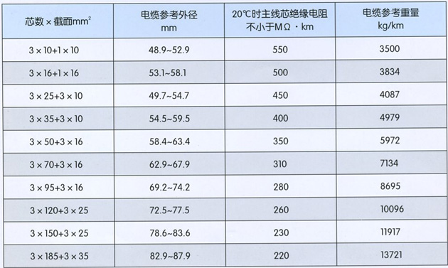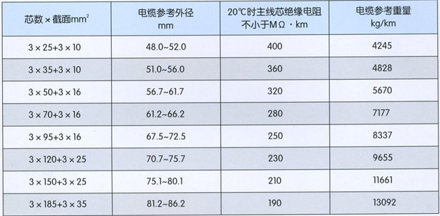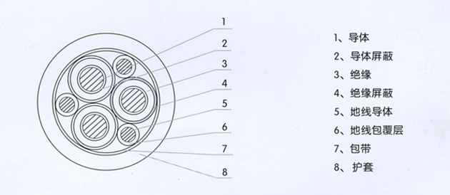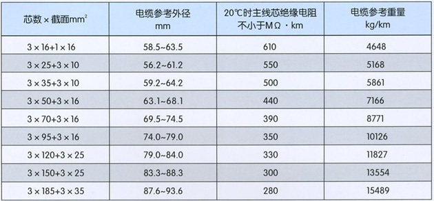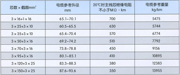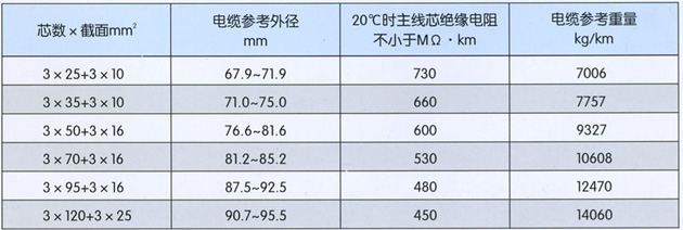本产品适用于额定电压14/25kv及以下露天矿及各地下掘进重型移动设备用铜芯乙丙橡皮绝缘氯丁橡皮护套高压橡套软电缆