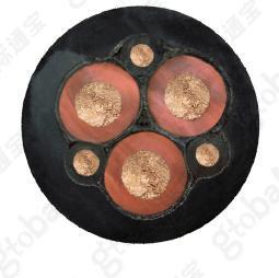 成缆:3个主线和1个地线围绕半导电橡皮填芯按右向成缆。3个地线时分别放在主线芯之间,不增加成缆外径。