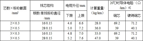 2)电缆绝缘线芯间的绝缘电阻换算到温度20℃时不小于50MΩ·km。