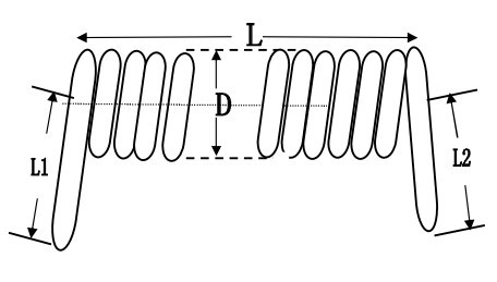 ■ 请填写 L, D, L1, L2 产品应用数据,没有特殊要求的情况下,弹簧电缆的拉伸范围是螺旋长度(L)的3-3.5倍。