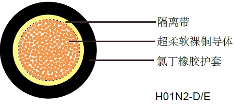 多股细绞超细裸铜丝导体,符合DIN VDE 0295/HD383/IEC60228 的规定 氯丁橡胶复合物外护套 (可根据客户要求定制颜色) |