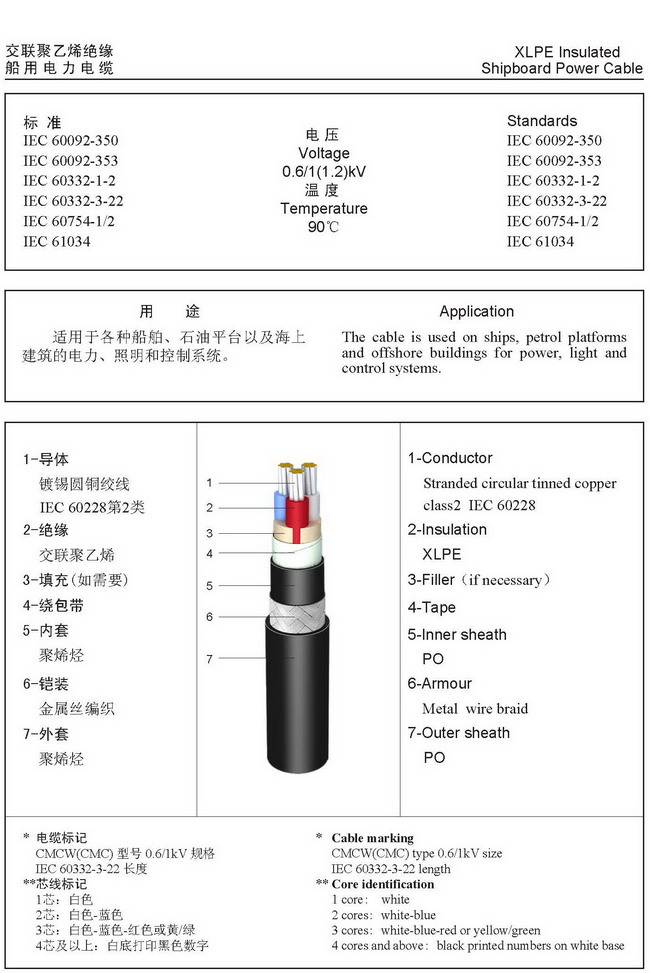 额定电压0.6/1kV交联聚乙烯绝缘船用