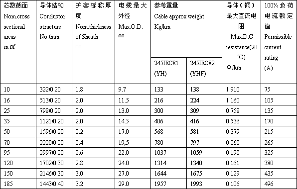 | YH YHF YHHR电焊机橡套电缆型号(Type):245IEC81(YH),245IEC82(YHF) |
