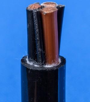抗拉卷筒电缆的缆芯之间加有黄麻绳承载, 芯线与护套间还包有一层无纺布缓冲, 在超高长度情况下还有进口芳纶纱和镀锌钢丝绳可供选择,其选材及结构有效保障了卷筒电缆的抗拉、防扭性能。